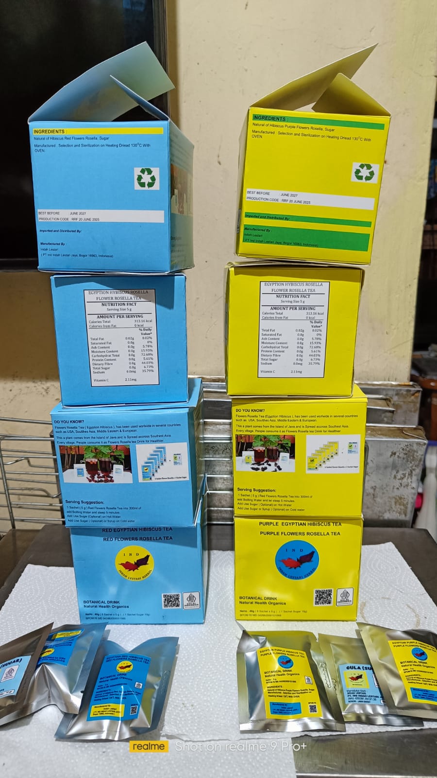 Producer hebs tea, has licency and marker at over 75 Retails of Supermarket, Mini Market and Farmacy on Indonesia more 7 Years, This are Product Herbs tea, ie;